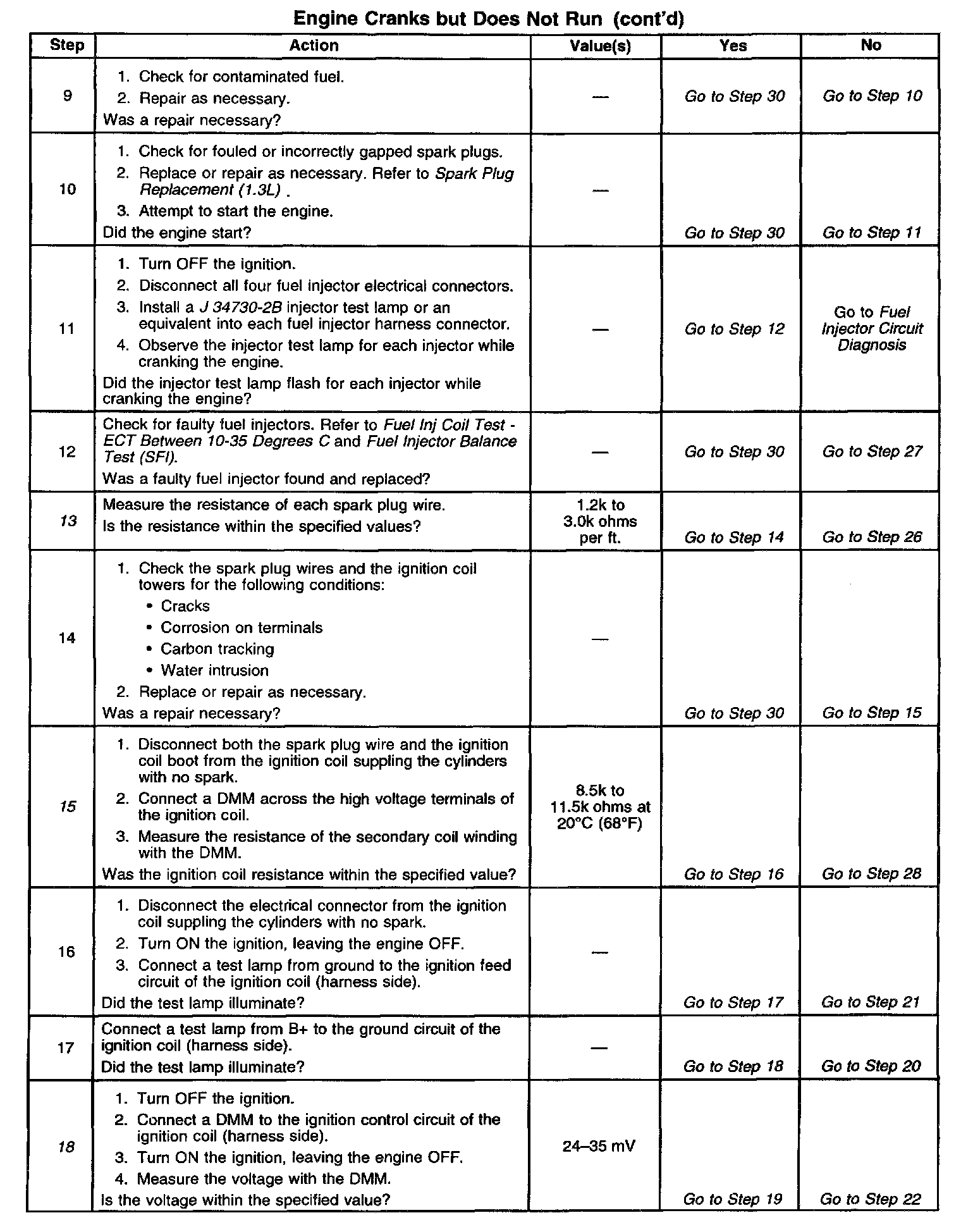13. This step checks for faulty secondary ignition wires.