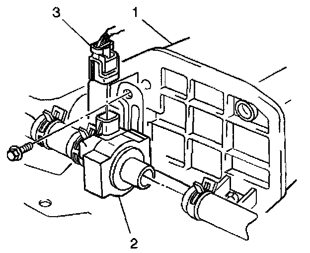 4. Connect the EVAP canister vent solenoid electrical connector (3) to the EVAP canister vent solenoid (2).