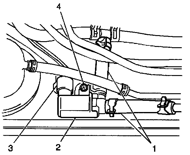1. Install the [1][2]EVAP tank pressure control solenoid valve (2) to the fuel tank and secure with the one screw (4).