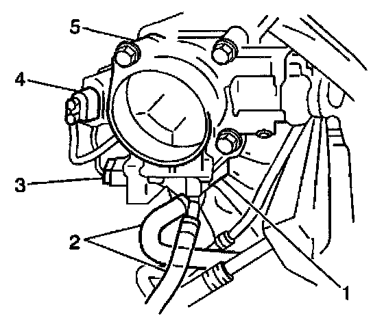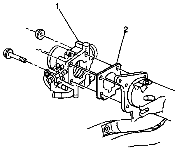 1. Install the throttle body (1) and a new gasket (2) to the intake plenum.