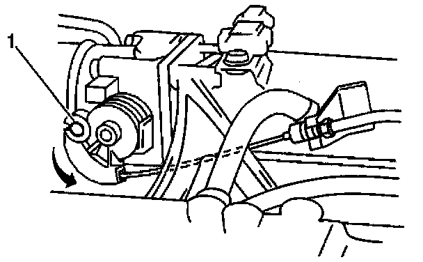 5. Secure the accelerator cable to the accelerator cable bracket by tightening the accelerator cable locknut (1).