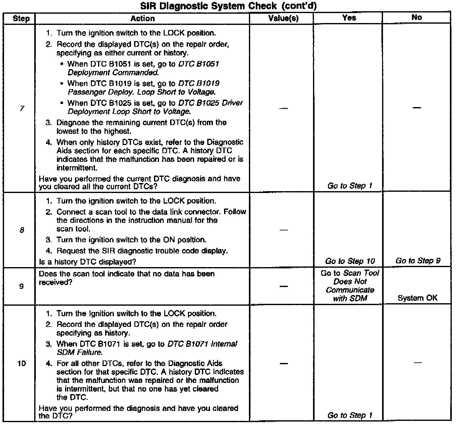 8. This step checks for the proper operation of the serial data line. This step also identifies any stored history diagnostic trouble codes.