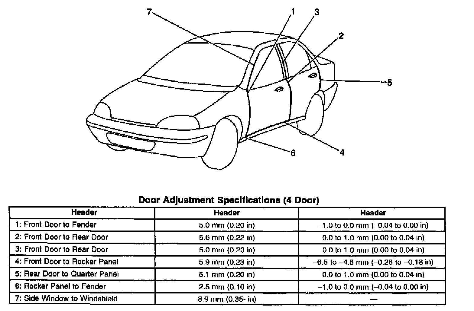 Door Adjustment Specifications (4-Door)