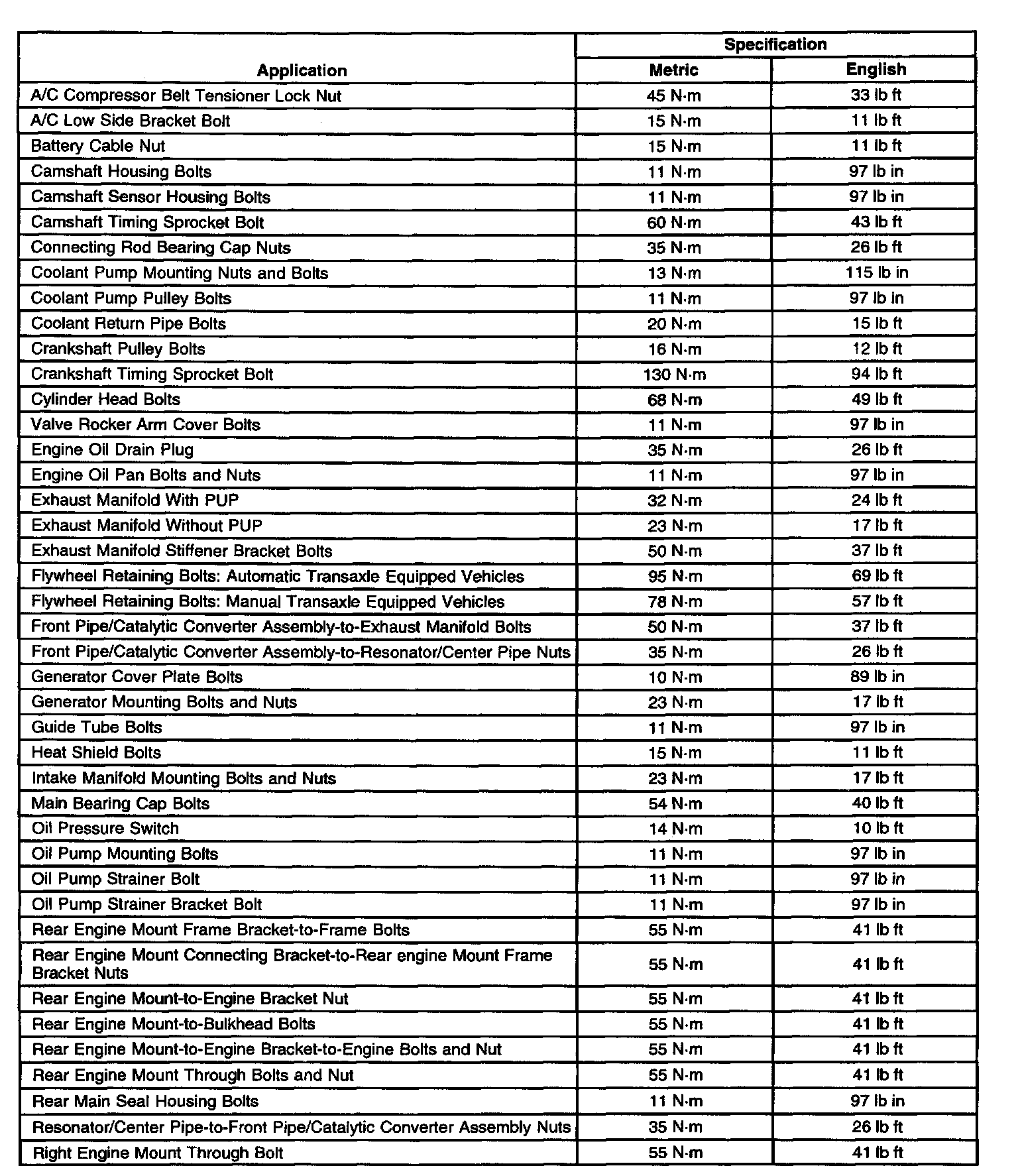 Fastener Tightening Specifications