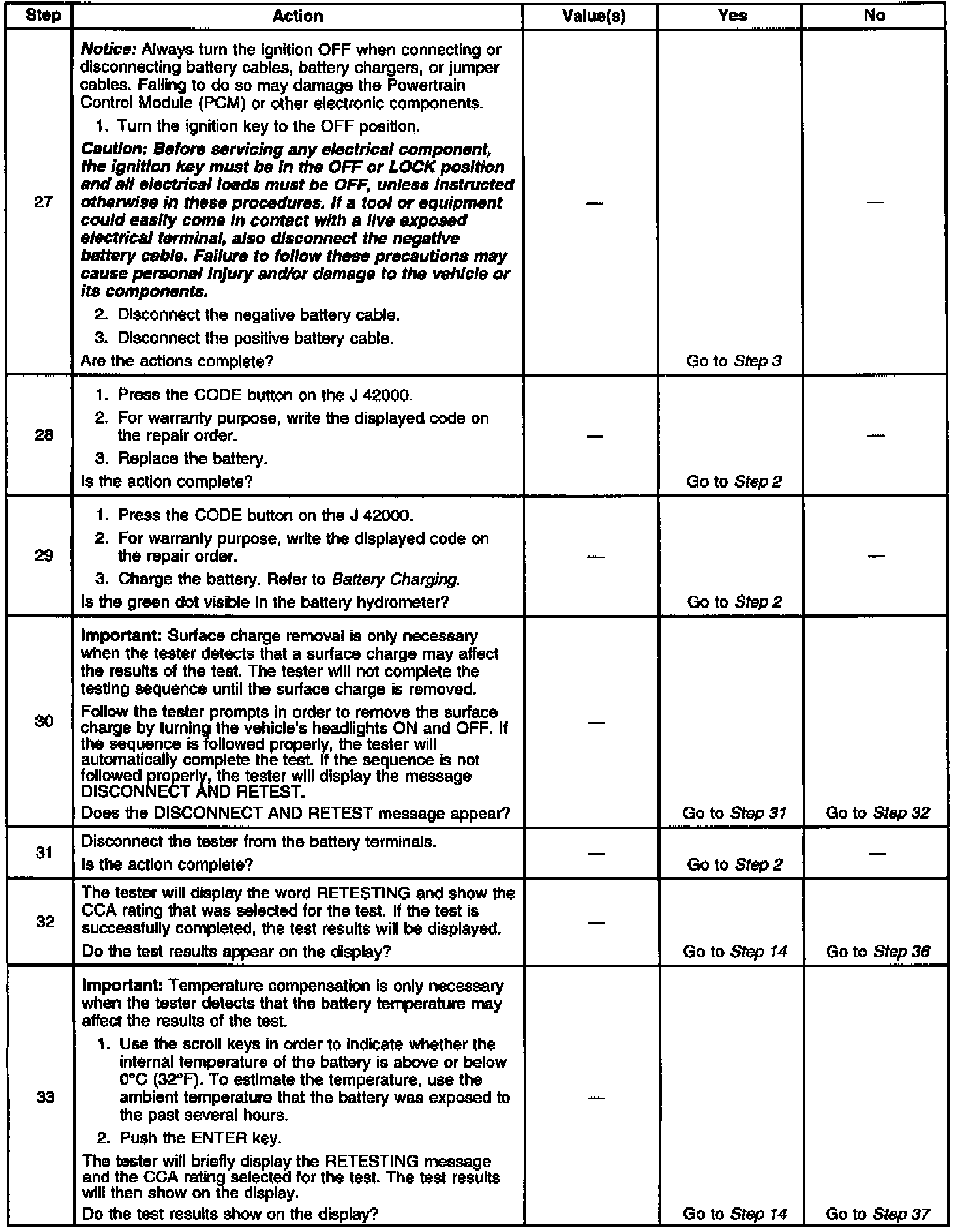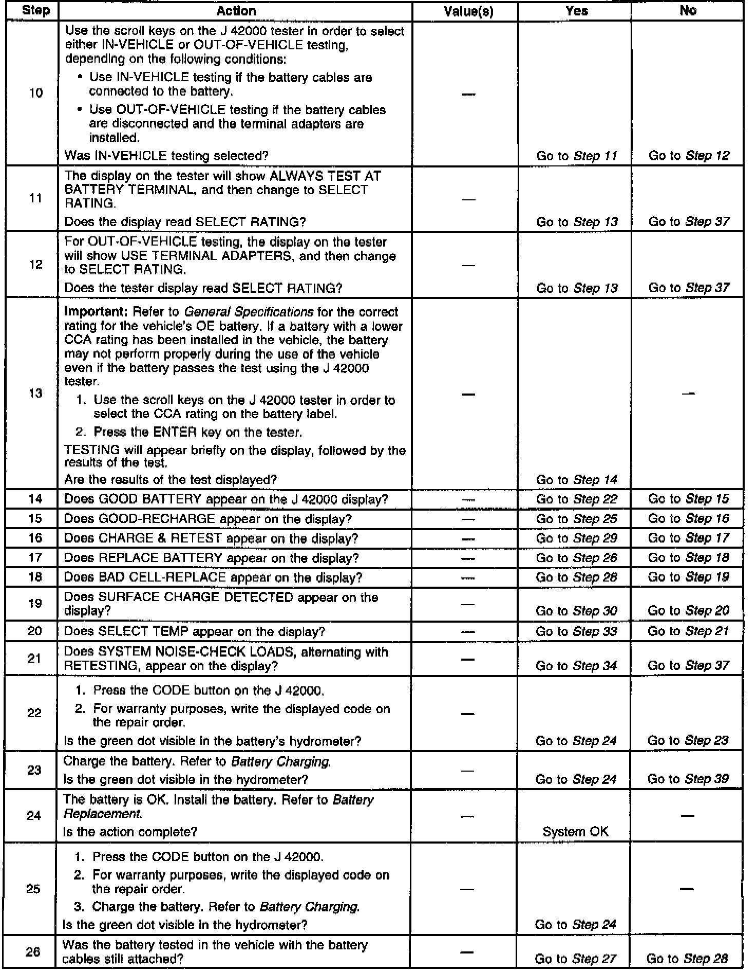 IMPORTANT: The battery test using the J 42000 Battery Tester requires correct connections to the battery terminals. A failure to obtain the correct connections during the test may result in replacing the battery unnecessarily.