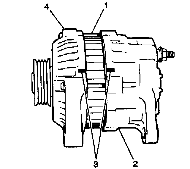 3. Remove the four generator housing bolts (1,3) from the front housing.