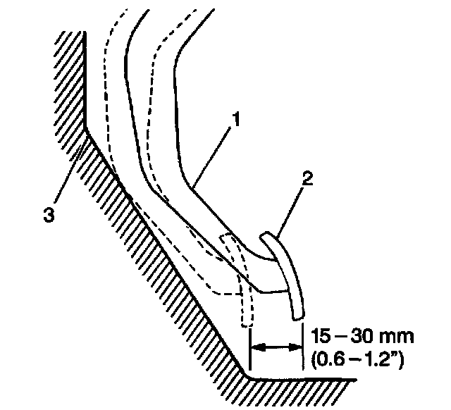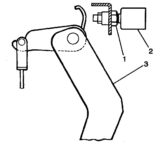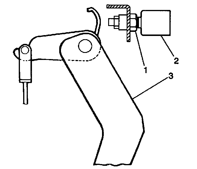 4. Depress the clutch pedal (2) to the floor (3). Return the clutch pedal 15 - 30 mm (0.6 - 1.2 inch) from the floor.