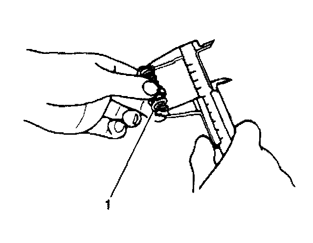 19. Measure the free length of the relief spring (1) using the dial calipers.