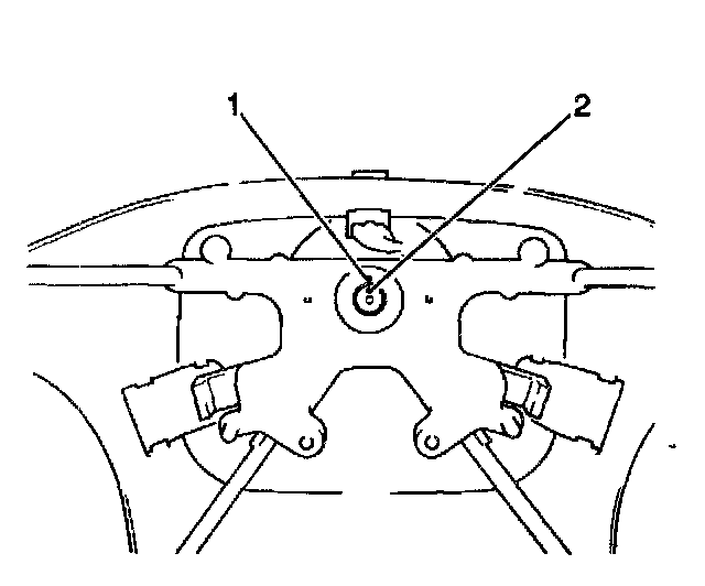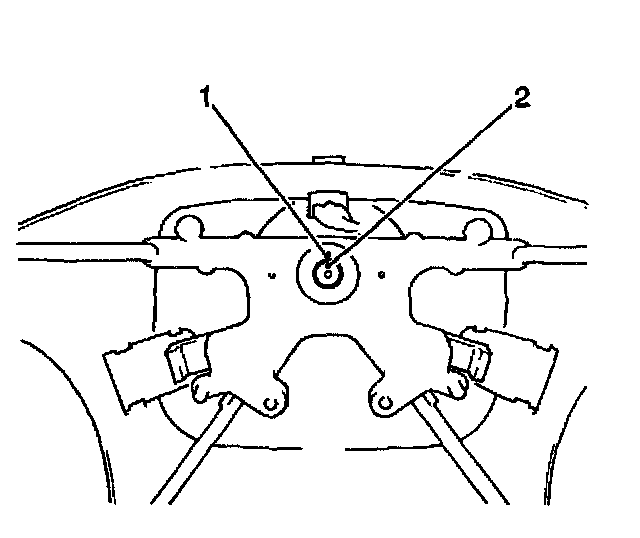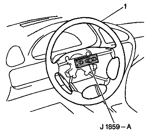 6. Install a J 1859-A steering wheel puller to the steering wheel (1).
