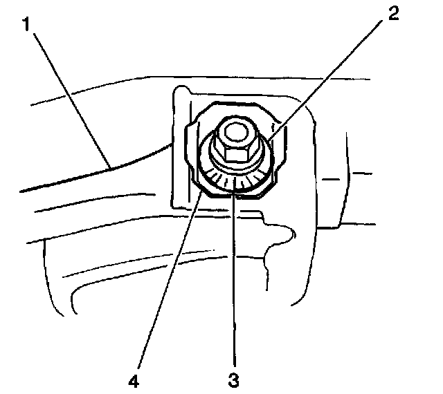 4. Scribe a match mark (3) on the control rod-to-body eccentric cam (2) prior to the bolt removal. This ensures proper eccentric cam positioning and toe following installation of the control rod (1).