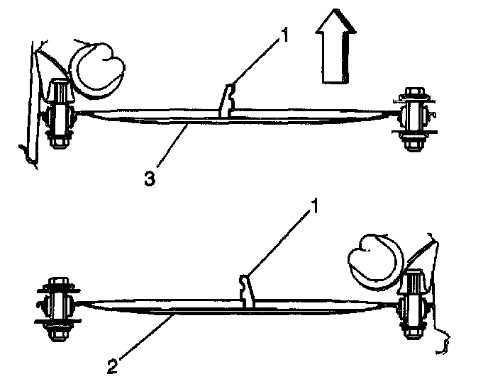 1. Note the angle of the brake hose mounting brackets (1) welded to each control rod. This determines the installation direction of the control rod.