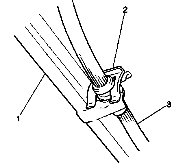 4. Install the brake hose (3) to the control arm bracket. Secure with the E-clip (2).