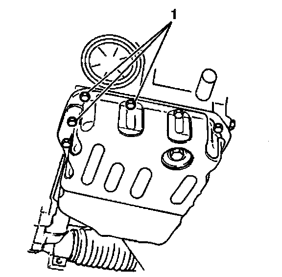 2. Remove 3 transaxle fluid pan bolts (1).