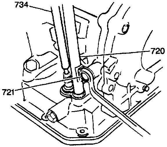 5. Disconnect the filler tube bracket bolt (721) and remove the fluid level indicator and the fluid filler tube (720).
