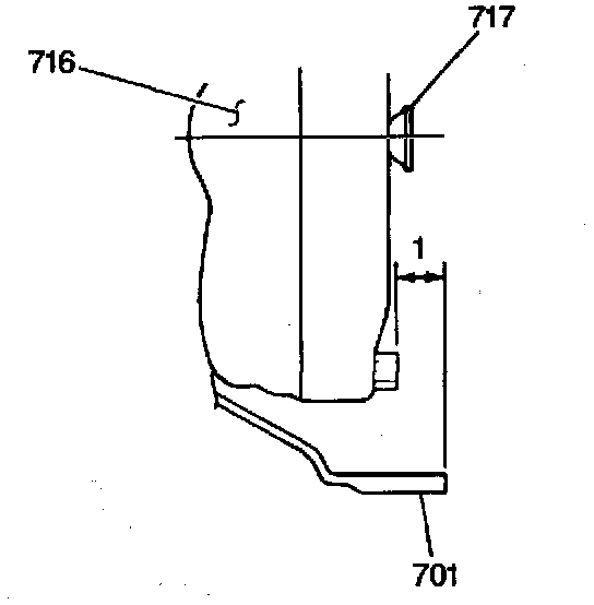 3. Measure the distance between the outer edge of the transaxie case housing (701) and the torque converter flange nut. This distance is indicated in the illustration by the number 1. Place a straightedge across the transaxle case housing and measure the distance using a J 26900-5. The distance should be more than 21.4 mm (0.85 in). It the distance is less than specified, remove the torque converter and reinstall correctly.