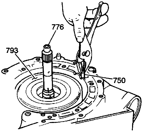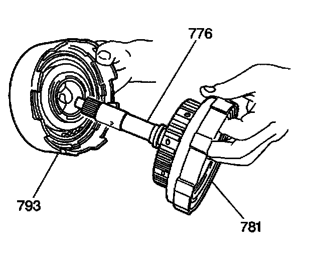 2. Remove the direct clutch (793) and the forward clutch (781) assemblies by grasping the input shaft (776) in your hand and gently lift up.