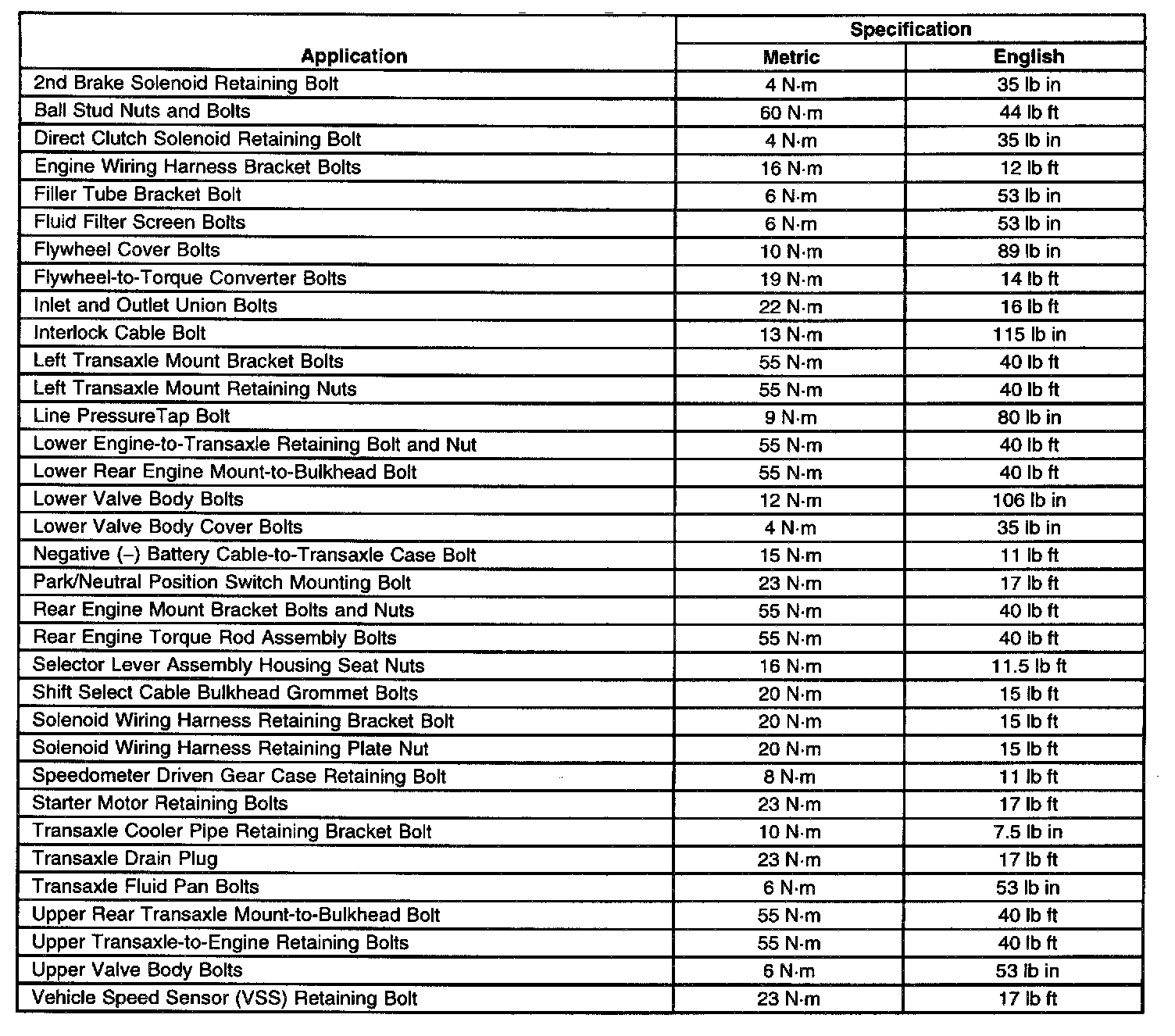 Fastener Tightening Specifications