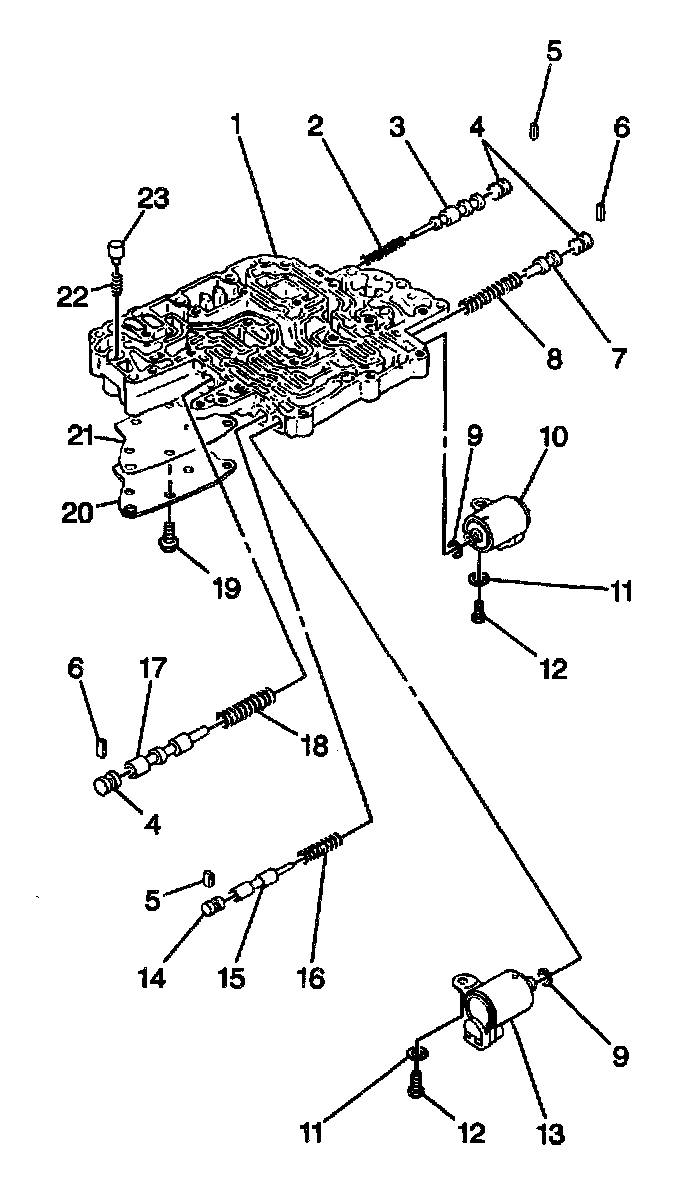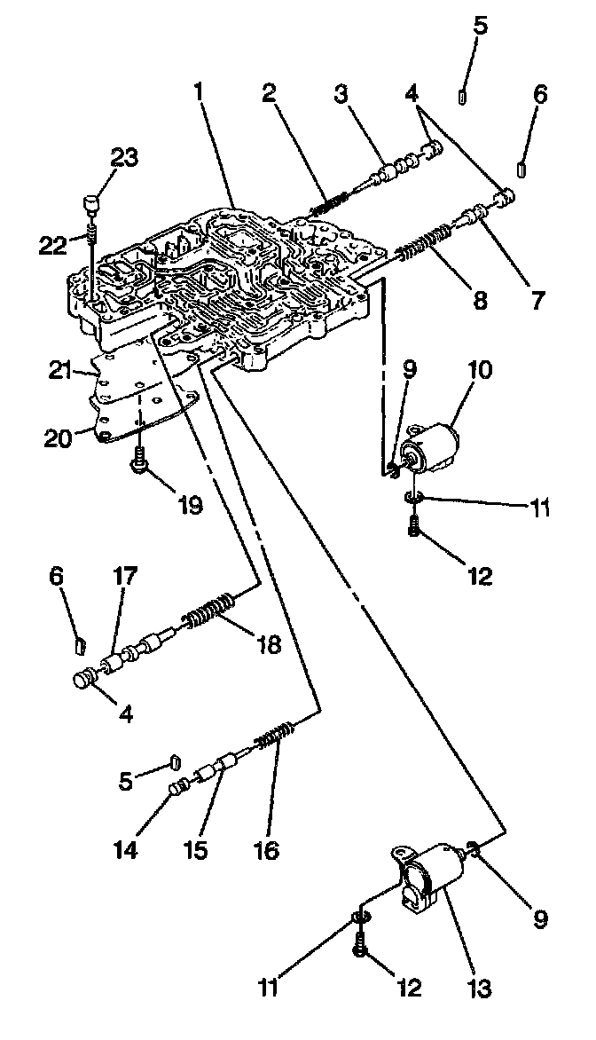 6. Remove one bolt and the second brake solenoid (13) from the lower valve body.