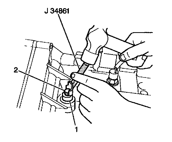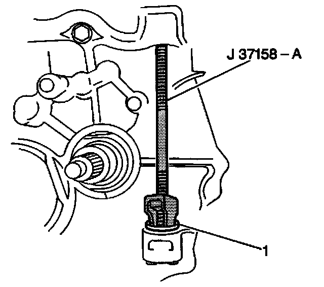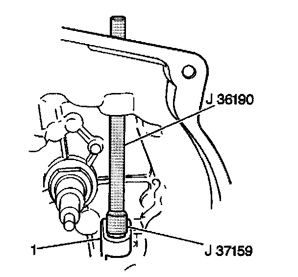 1. Install the clutch release shaft lower bushing (1) into the transaxle case using the J 37159 with the J 36190.