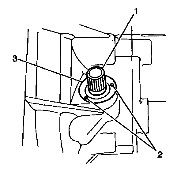 6. Stake (2) the transaxle case against the clutch release shaft seal (3) at the 2 points.