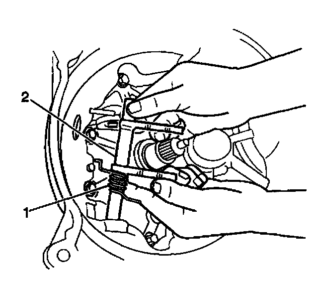 9. Install the clutch release shaft return spring (1) to the clutch release shaft fork (2).