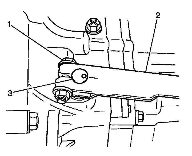 25. Remove 1 nut and 2 washers at the extension rod mounting stud (3).