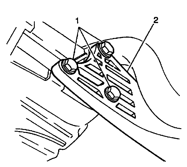 5. Remove the 2 clutch cable bracket bolts (1) from the clutch cable bracket (2). Set aside the clutch cable and the clutch cable bracket.