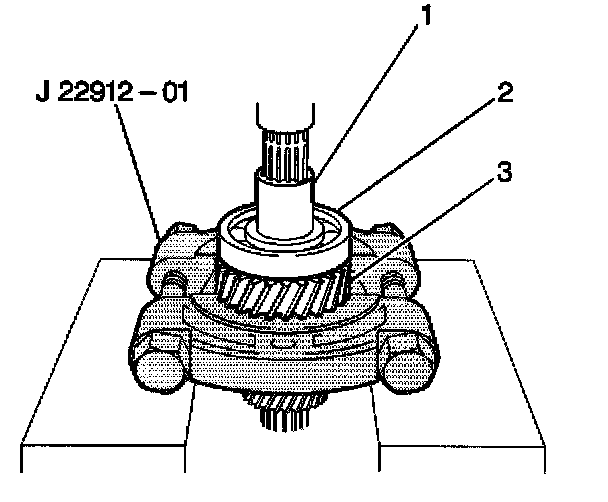 Important: In order to avoid placing undue stress on the gear teeth during removal, invert the J 22912-01 so that the flat side of the J 22912-01 is facing upward during disassembly of the input shaft assembly.