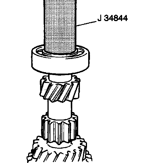 9. Use the J 34844 and a press arbor in order to install the input shaft fourth gear and the left input shaft bearing simultaneously.