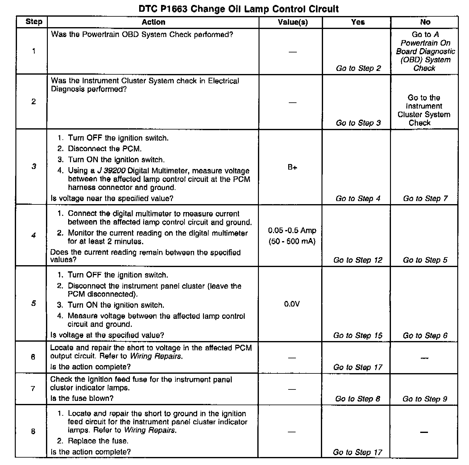 Number(s) below refer to the step number(s) on the Diagnostic Table: