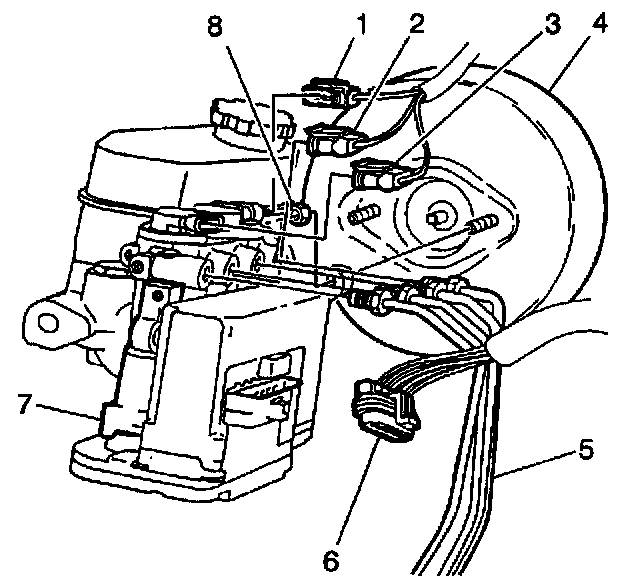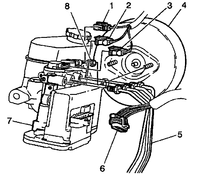 1. Install the ABS brake modulator/master cylinder assembly (7) into the vehicle.