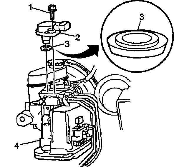 1.2. Verify that the brake solenoid valve lip seal (3) is properly positioned before installing the brake solenoid valve (2) in the ABS brake modulator (4).