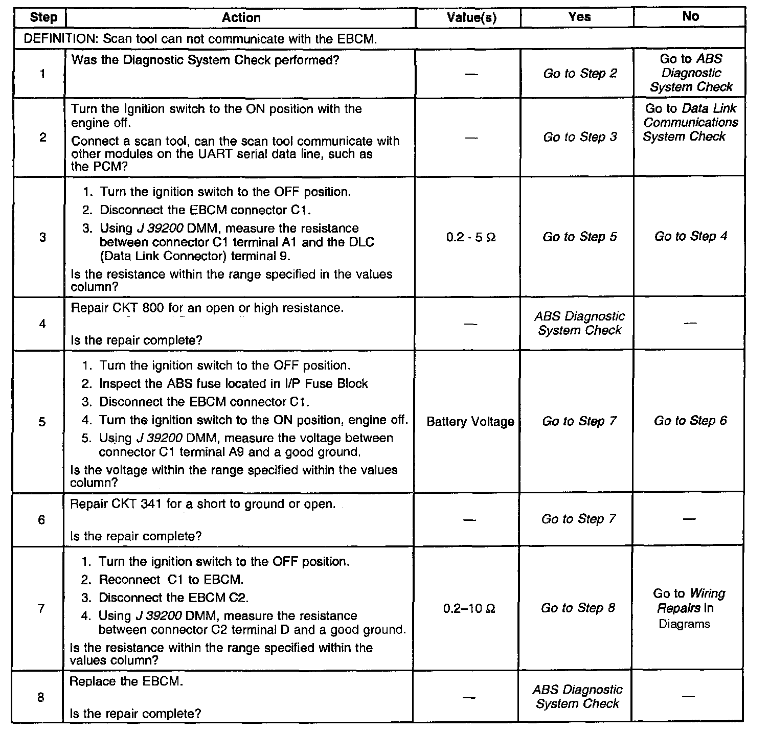 ^ If an intermittent malfunction exists, refer to General Electrical Diagnosis Procedures in Diagnostic Aids.