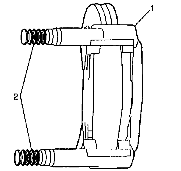 2. Remove the caliper mounting bracket bolts (1) using the J 36721.