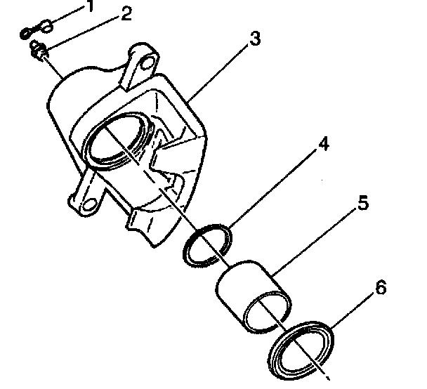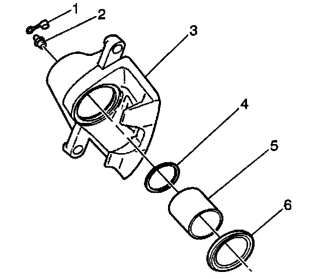 5. Remove the piston seal (4) from the groove in the caliper bore (3). Use a small wooden or plastic tool.