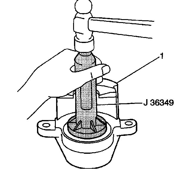 6. Seat the caliper boot in the caliper housing (1) counterbore using J 36349