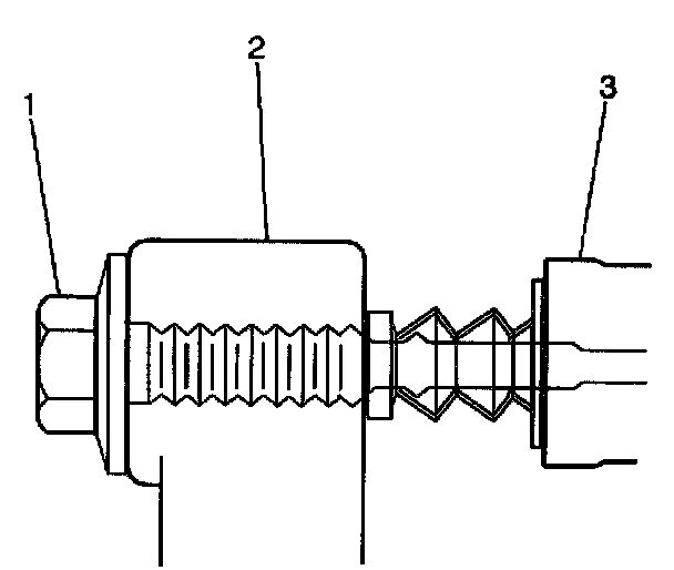4. Install the caliper bolts (1). Use a screwdriver in order to push the bolt boot over the shoulder of the caliper bolt. Ensure that the bolt boot fits securely in the groove of the pin bolt.