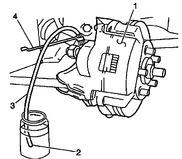 7.1. Attach the bleeder hose (3) to the bleeder valve at each wheel.