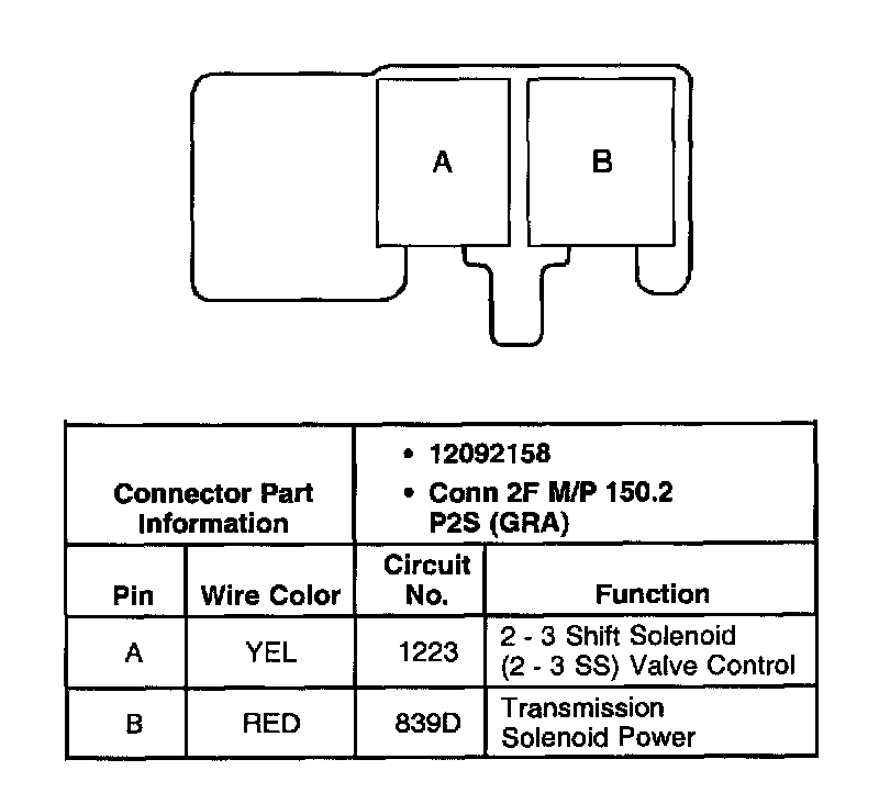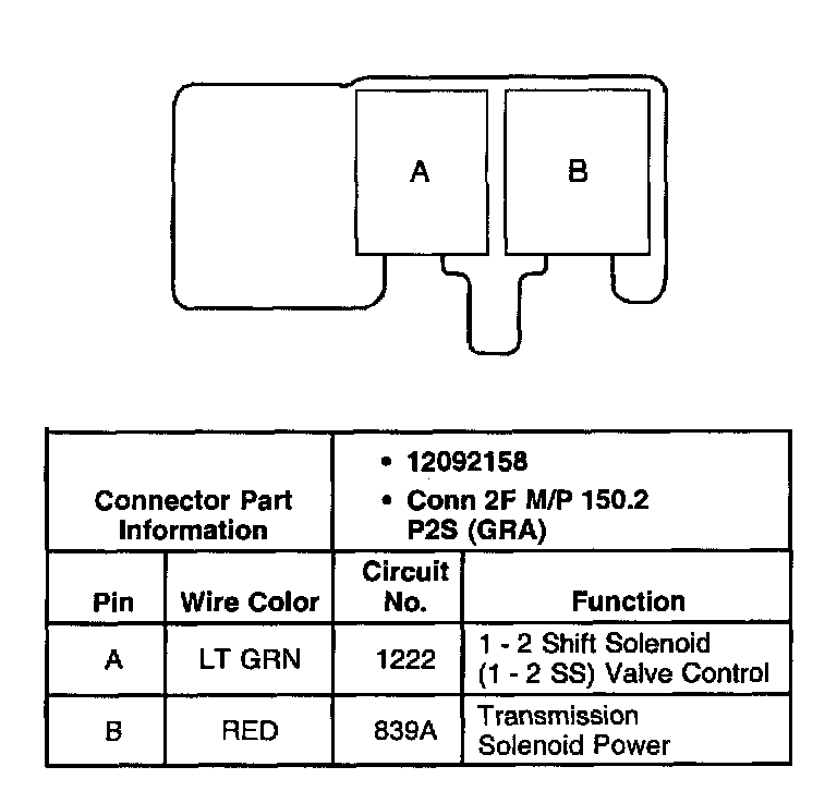 1 - 2 Shift Solenoid Valve Connector, Wiring Harness Side