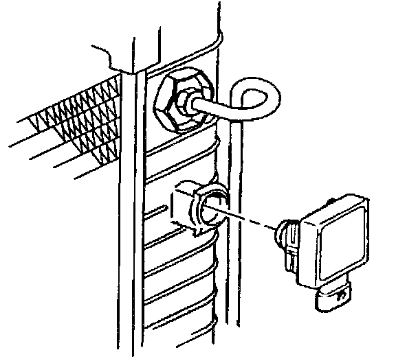 Important: To unlock the low coolant module, lift one leg of the snap clip from its locked position and pull outward with a slight twisting motion.