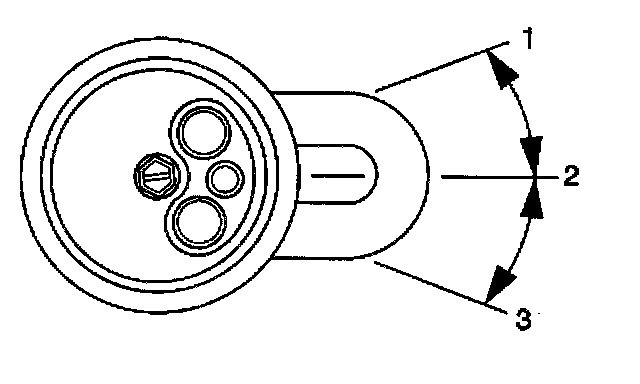 2. Install the engine coolant heater. Position the engine coolant heater element at the 3 O'clock position (2), as shown. Final installed position between 2 O'clock (1) and 4 O'clock (3) is acceptable.