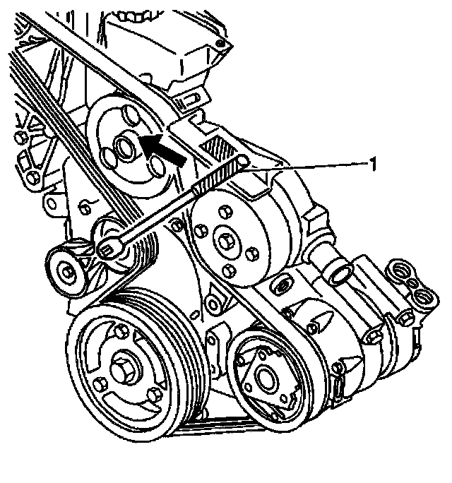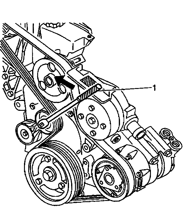 2. Remove the drive belt tension by lifting or rotating the drive belt tensioner off of the drive belt, using a 3/8-inch breaker bar (1).