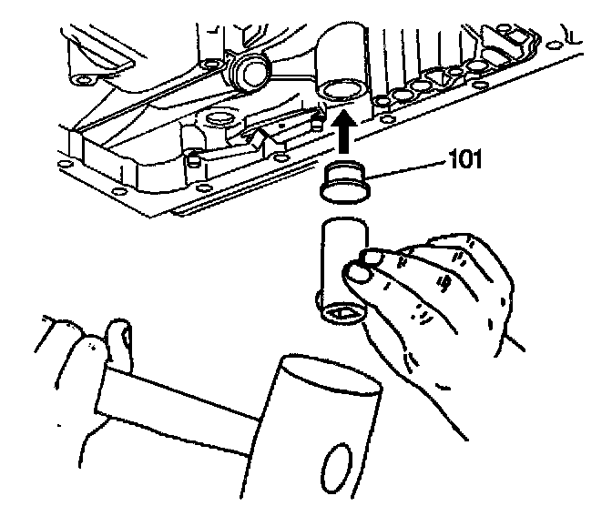 2. Remove the filter (100). Remove the lip ring seal (101) pressed into the case only if replacement is necessary.