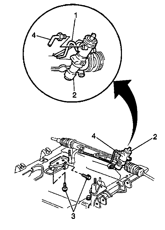 4. Remove the power steering return line (4) from the power steering gear (2).