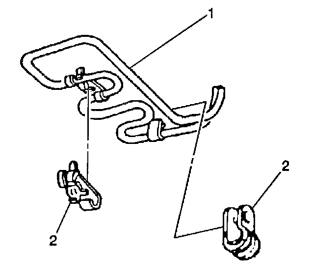 1. Install the power steering cooler pipe to the frame (1).