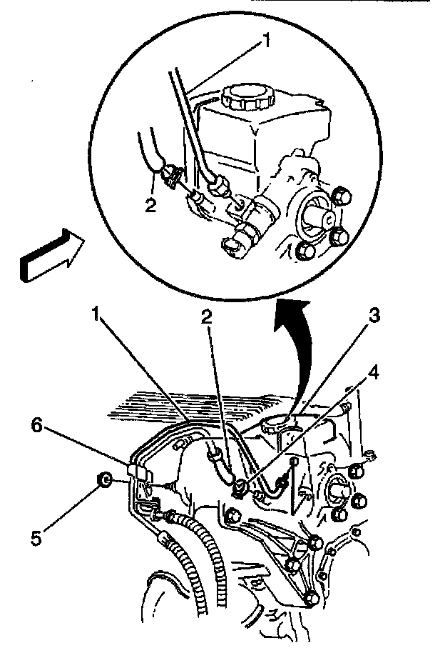 6. Install the power steering pressure line to power steering lines bracket (6).