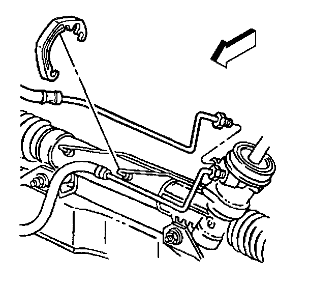 7. Remove the power steering pressure line from the clamps on the power steering gear.