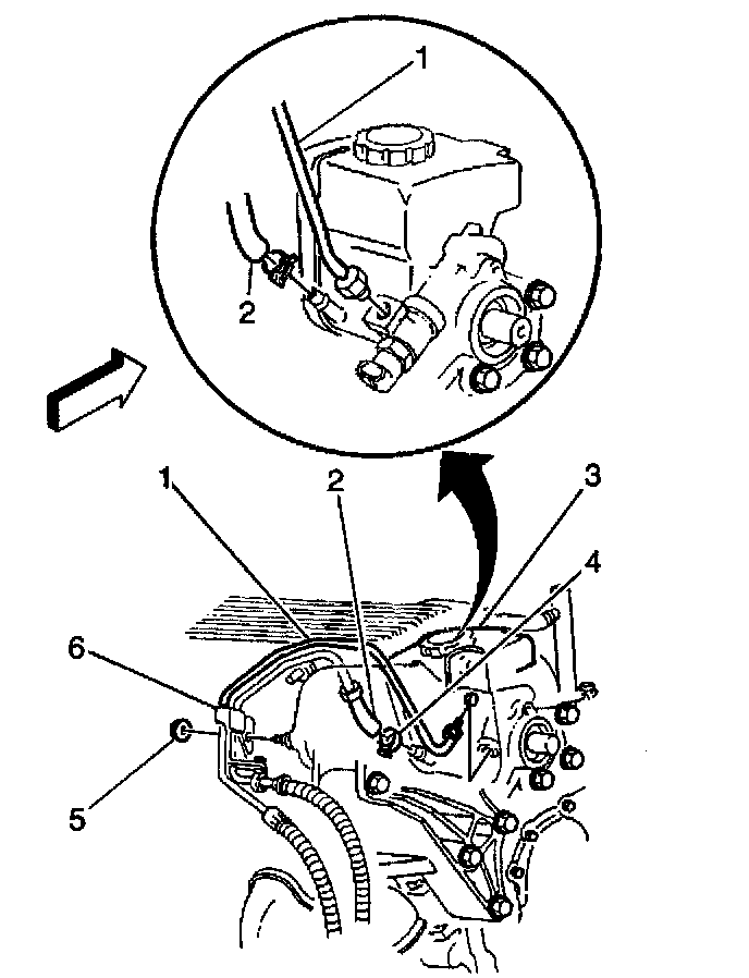 - The power steering pump return line.