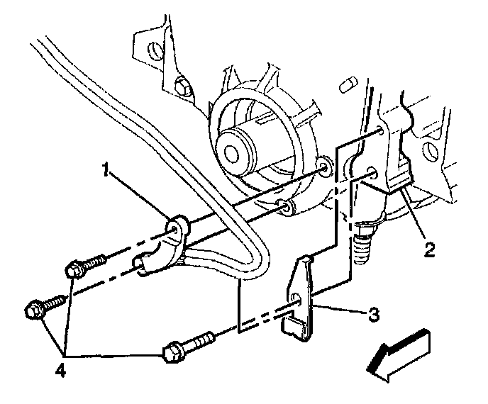 1. Install the 24X Crankshaft Position Sensor with bolts (2) and route harness as noted during removal.