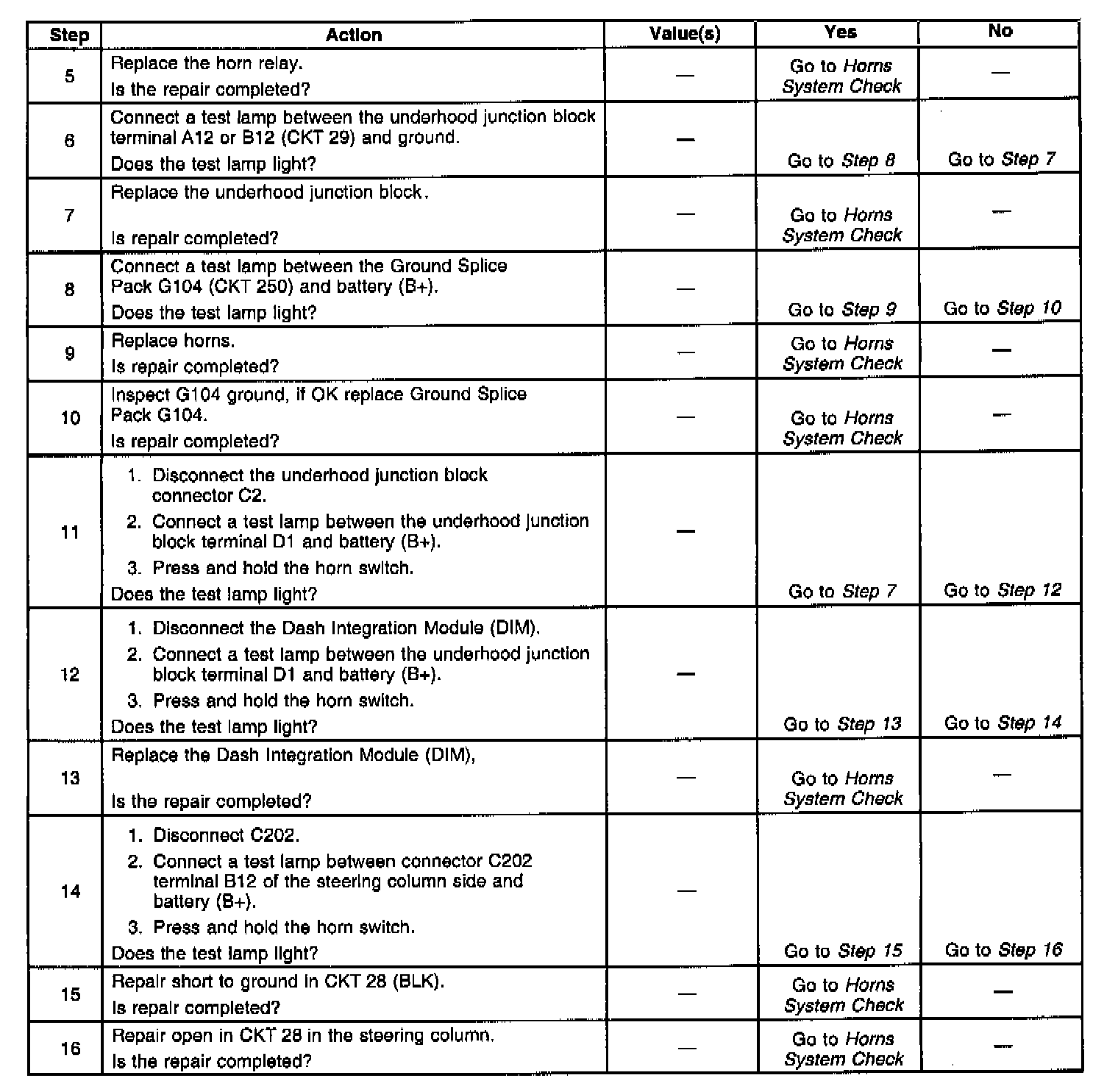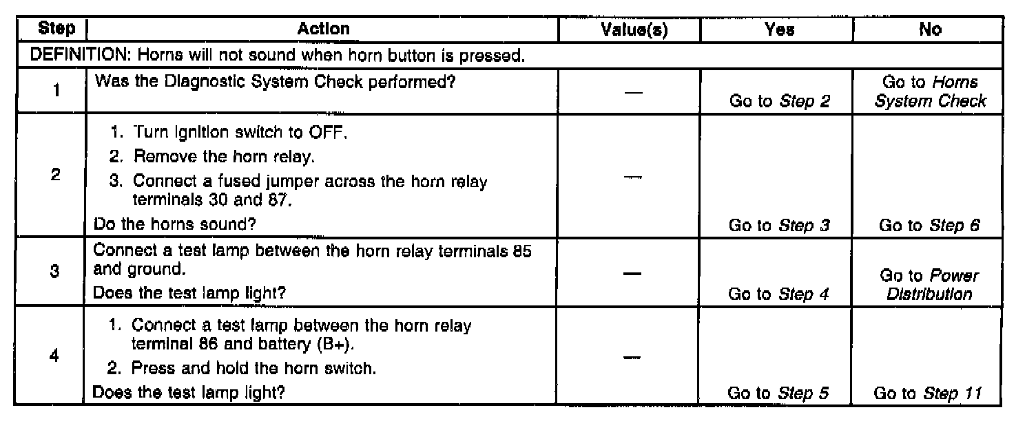 Diagnostic tables provide a procedure that will help you locate the condition in a circuit that is causing a malfunction. All diagnostic procedures are symptom based, to assist you in locating the condition as fast as possible. Diagnostic tables should exist for all possible (realistic) symptoms and diagnostic trouble codes (DTCs).